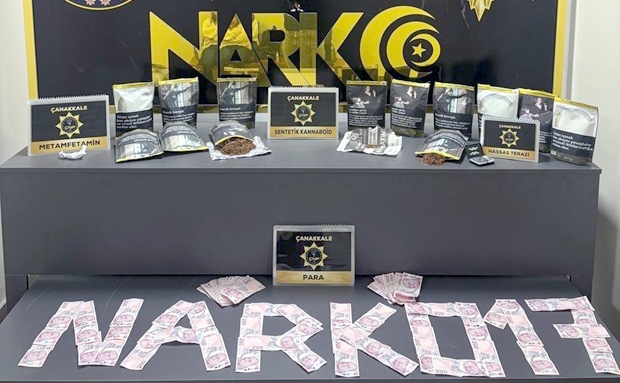 Çanakkale Cumhuriyet Başsavcılığı koordinesinde İl Emniyet Müdürlüğü Narkotik Suçlarla Mücadele Şube Müdürlüğü ekipleri, uyuşturucu satıcılarına yönelik operasyon düzenledi. 28-29 Eylül 2025 tarihlerinde gerçekleştirilen operasyonda 2 şüpheli gözaltına alındı. Yapılan aramalarda: yaklaşık 20 kilogram sentetik kannabinoid (bonzai) hammaddesi, 1 kilo 610 gram sentetik kannabinoid (bonzai), 1,90 gram metamfetamin, 1 adet hassas terazi, Uyuşturucu ticaretinden elde edildiği değerlendirilen 23 bin 90 TL nakit para ele geçirildi.