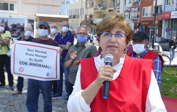 DİSK / Emekli-Sen adına basın açıklamasını yapan yönetim kurulu üyesi Emine Pehlivan açıklamanın devamında şu ifadelere yer verdi; "65 yaş üstü bireylere yaşatılan bir hapis hayatıdır. Üstelik alınan kararlarla hayata geçirilen “yeni normalin” salgınla bilimsel bir mücadele anlamında bir temeli yoktur. Yaşlıların, yaşamlarının emeklilik sonrası dönemlerinde, yüksek bir refah seviyesinde yaşamalarını garanti altına alması gereken iktidarlar, yasakları bu kesimle sınırlı tutarak temel insan hak ve özgürlüklerine aykırı davranmaktadır. Ne yazık ki, burjuvaziden kurucu ilkelerine uygun hareket etmesini talep etmek, biz yaşlılara/emeklilere düşmektedir. İnsan Hakları Evrensel Beyannamesinde açıkça yer alan ayrım yapma yasağına, pandemi döneminde de uyulmamıştır; uyulmamaktadır. Bizlerin toplumla bağını kesmek yönünde atılan bu adımlar Covid-19’dan daha da fazla iktidarın hedef aldığı kesim olduğumuzun açık ilanıdır. DİSK / Emekli-Sen olarak, 65 yaş üstü bireyleri korumaktan uzak ve ötekileştirici bu uygulamaların bir an önce son bulmasını talep ediyoruz. Bir insan hakları ihlali boyutuna ulaşmış 65 yaş üstü sokağa çıkma yasağına karşı sesimizi yükseltiyoruz: emekliyiz, haklıyız, kazanacağız! Yaşasın DİSK / Emekli-Sen."