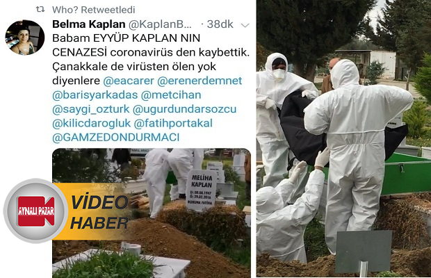 Dün Sağlık İl Müdürü Dr.Ali Taşçı'nın açıklamalarında "Çanakkale'de Corona Virüsünden ölen yok" açıklamasına atıf yaparak isyan eden acılı evlat Belma Kaplan; Sağlık Bakanı Dr.Fahrettin Koca, CHP Genel Başkanı Kemal Kılıçdaroğlu başta olmak üzere ünlü gazetecileri de etiketlediği mesajında; "Babam EYYÜP KAPLAN'IN CENAZESİ coronavirüs den kaybettik. Çanakkale de virüsten ölen yok diyenlere" ifadelerini paylaştı.