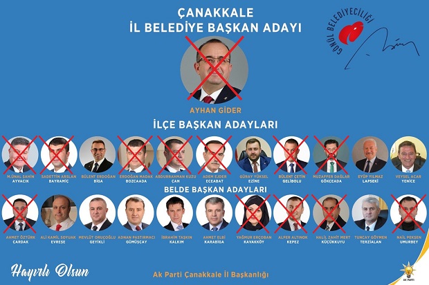 Seçim sırasında Ayhan Gider Neredeyse yalnız başına savaş verdi. Zaman zaman partideki bir kesim tarafından sabote edildiği bile iddia edildi. Teşkilatlar hatta Belediye Meclis üyeleri bile Ayhan Gider'i yalnız bıraktı. Hatta MHP bile Ak Partiden daha fazla Ayhan Gider'e destek verdi. Bülent Turan , seçimde ağırlığı Lapseki'de hissettirirken merkezde neredeyse hiç yoktu. Bülent turan Medyası olarak bilinen gazeteler ise seçimde neredeyse Ayhan Gider'in karşısında yer aldılar. Hatta Ülgür Gökhan'ı desteklediler. Seçimin kaybedildiği merkez, Ayvacık ve Bayramiç üvey evlat muamelesi gördü. Ak Partide Yaşanan yenilginin sonrası eleştirilerinde hedefinde teşkilatlar var. Partide İl ve Merkez ilçe teşkilatının görevden alınmasına neredeyse kesin gözüyle bakılıyor.