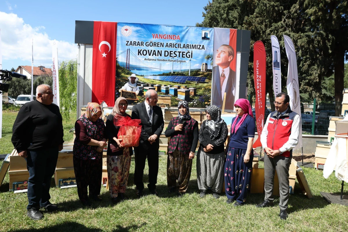 Çanakkale Valisi Ömer Toraman, İl Tarım ve Orman Müdürlüğü'nde düzenlenen törenle yangından zarar gören arıcılara kovanlarını teslim etti. %75 hibeli proje kapsamında 2 bin kovanın dağıtıldığı törende konuşan Toraman, "Çanakkale bal üretiminde güçlü bir marka, kayıpları el birliğiyle telafi edeceğiz" dedi.