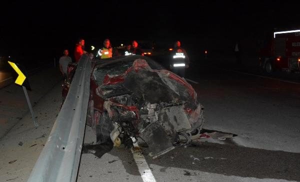 Çanakkale'de, kontrolden çıkarak, bariyerlere çarpan otomobilin sürücüsü Abdurrahman Aydın, ağır yaralandı.