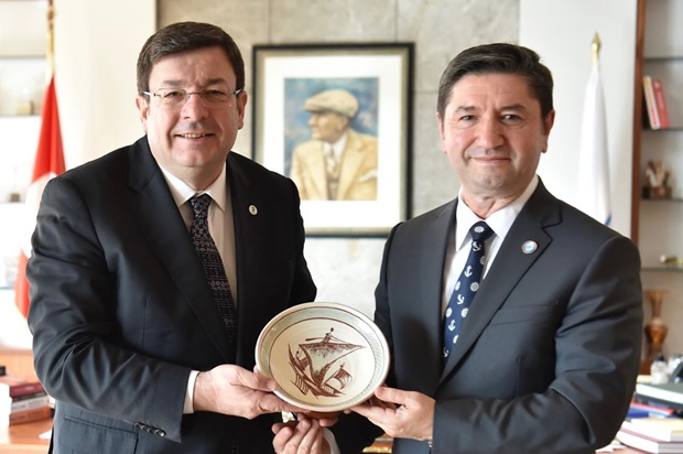 İstanbul Büyükşehir Belediyesi Dış İlişkiler Daire Başkanı ve B40 Balkan Şehirleri Ağı Daimi Sekreteri Barbaros Büyüksağnak, Çanakkale Belediye Başkanı Muharrem Erkek'e sunum yaptı.