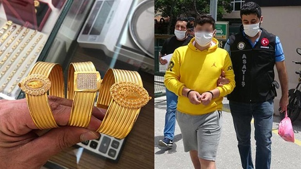 D.H., bilezikleri çaldığı kuyumcu Çağlan'a cep telefonundan mesaj göndererek, bileziklerin olduğu kuyumcunun yerini söyledi. Dün başka bir iş yerinden 2 cep telefonu çalan D.H., Ezine'de yakalandı. Sorgusunun ardından da adliyeye sevk edildi.