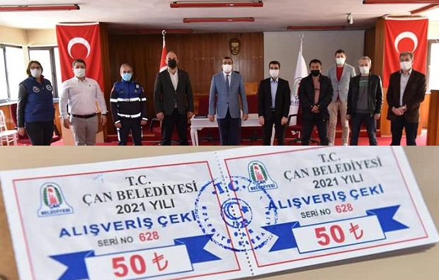 Sosyal Belediyecilik anlayışı ile yerel kalkınma önceliğine önem veren Çan Belediye Başkanı Bülent Öz, yerel esnaflarda kullanılmak üzere personeline gıda alışveriş çeki hediye ederek yerel esnafa sahip çıktığını bir kez daha gösterdi.