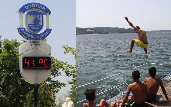 Çanakkale'de termometreler, öğleden sonra 41 dereceyi gösterdi. Sıcak havalardan bunalanlar, kendilerini gölge alanlara atarken bazı vatandaşlar da denize girerek serinlemeye çalıştı.