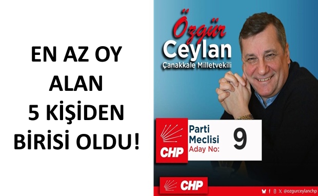 CHP'nin 22. Olağanüstü Kurultayı hafta sonu tamamlandı. Kurultayda Parti Meclisi(PM) ve Yüksek Disiplin Kurulu(YDK) üyelerinin de seçimleri gerçekleşti. Blok liste yöntemi uygulanan seçimlerde CHP Çanakkale Milletvekili Özgür Ceylan listede dokuzuncu sırada yer aldı. 9’ncu sıradan listeye giren Özgür Ceylan, PM üyesi seçimlerinde en az oy alan 5 kişiden birisi olması ile dikkat çekti.