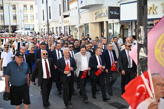Ziyaretlerin ardından saat 13.30’da Demircioğlu, İnönü ve Çarşı Caddeleri’nde mehteran eşliğinde kortej yürüyüşü düzenlendi. Heyet ve katılımcılar, Cumhuriyet Meydanı’na kadar süren yürüyüş boyunca esnaf ve vatandaşlarla bir araya geldi.