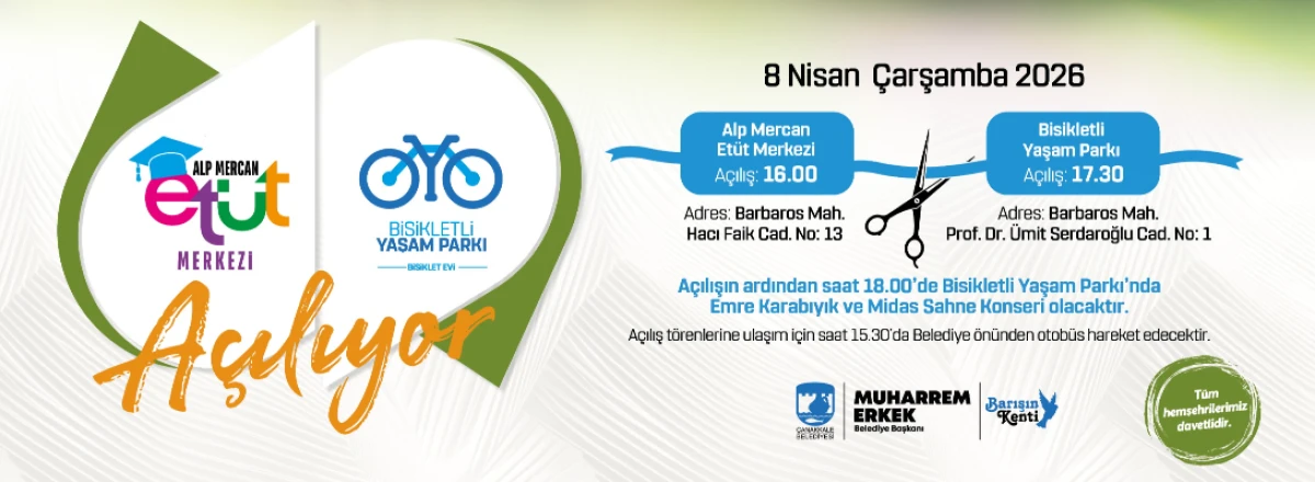 Çanakkale Belediyesi tarafından yapımı tamamlanan Alp Mercan Etüt Merkezi ile Bisikletli Yaşam Parkı, Çarşamba günü kapılarını açıyor. Gençlerin akademik başarısını destekleyecek etüt merkezinin ardından, kentte bisiklet kültürünü yaygınlaştıracak yeni parkın açılışı gerçekleştirilecek.