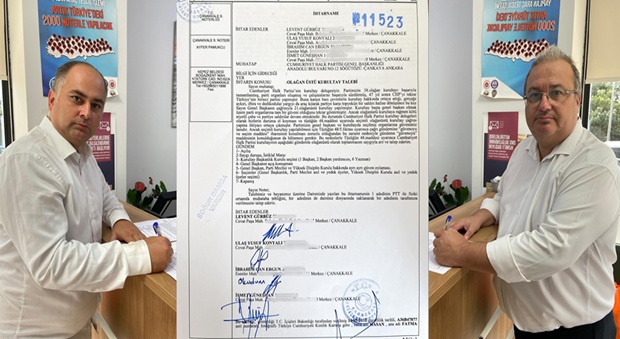 Cumhuriyet Halk Partisi(CHP)’nde olağanüstü kurultay talebine Çanakkale’den de destek geldi. CHP Çanakkale İl Başkanı Av. Levent Gürbüz, Çanakkale Milletvekili İsmet Güneşhan ve Merkez İlçe Başkanı Can Ergun, kurultay çağrısını desteklemek amacıyla Çanakkale 8. Noter’de imza verdi.