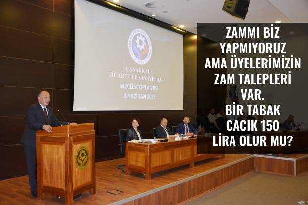 ÇTSO’ya üyelerin fiyat artış talepleri ile geldiğini, bunların taleplerini ilgili komisyondan geçtikten sonra meclis onayına sunduklarına dikkat çeken Semizoğlu; “Gündemimizde azami fiyat tarife talepleri de var. Biz Yönetim Kurulu toplantısında yarım saat azami fiyat tarife taleplerini tartıştık. İlke Bey de aramızda Bozcaada’da işletmesi olan arkadaşımız. Çok tasvip etmediğimiz fiyatlar da var. Ama tasdik etmediğimiz zaman sıkıntı da yaşıyoruz. Neyi ne ile karşılaştıracağız? Tarife taleplerinde 150,00 TL’ye cacık var. Ben şunun altını çizmek istiyorum; bu tarifeleri biz üyemizin isteği doğrultusunda veriyoruz. Reddettiğimiz de oluyor. Önce Komiteden geçiyor, Yönetime Kuruluna geliyor buradan geçiyor, Meclis toplantısına geliyor. Özellikle bu talepler Bozcaada’dan geliyor. Çünkü fiyatlar yüksek. Şöyle de yanlış bilgilendirme oluyor; bizim verdiğimiz tarifeyi asıyorlar, sanki biz o paraya işletmelere sat diyormuşuz gibi yanlış algılama oluyor. Ben şunun altını çizmek istiyorum bu tarifeler üyelerimizin talebi üzerine Odamız tarafından veriliyor. Birazdan fiyatları göreceksiniz. Altını çizmek istediğim husus: azami fiyat tarifesini üyelerimiz talep ediyor, biz veriyoruz” dedi.