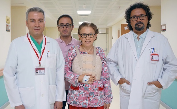 Ameliyat hakkında bilgi veren Doç. Dr. H. Fatih Aşgün şunları söyledi: “Hastamız yedi yıl önce kalbinde doğuştan gelen rahatsızlıklar nedeniyle kliniğimizde açık kalp ameliyatı olmuştu. Ameliyat sonrası dönemdeki takiplerimizde herhangi bir sorun yaşamamış ve tetkiklerinde kalbindeki sorunun tümüyle düzeldiği görülmüştür. Hatta ameliyatından 2-3 yıl kadar sonra hamile kalmış, sorunsuz bir hamilelik dönemi yaşayarak evlat sahibi olmuştur. Yüksek tansiyon rahatsızlığı olan hasta zaman zaman bu nedenle Kardiyoloji kliniğine başvurmuştur. Ancak dış merkezde nefes darlığı, erken yorulma ve sıkışma gibi şikâyetlerle yapılan kalp anjiyografisinde kalp damarlarında daralma tespit edilmesi üzerine hastamız beni aradı ve durumu aktardı. Kendisini hastanemizde değerlendirdik ve durumunu kalp konseyine sunduk. Daha önce açık kalp ameliyatı geçirmiş olması nedeniyle ikinci bir açık kalp ameliyatı uygulanması, riski en az 3 kat arttırıyordu. Ancak kalbe giden her üç damarda da ciddi darlık olması ve balon/stent uygulanmasına uygun olmaması nedeniyle cerrahiye karar verdik. Ameliyatın risklerini hastamıza açıkladık ve onayını alarak ameliyatı gerçekleştirdik.”