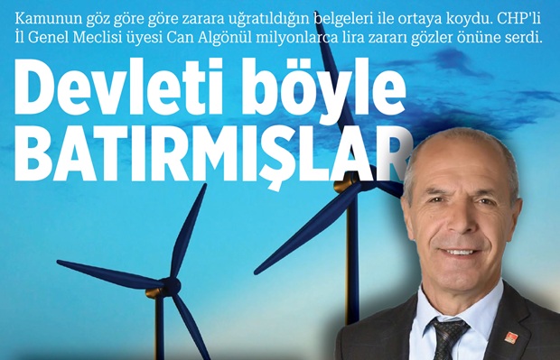 CHP’li İl Genel Meclis üyesi Can Algönül, Çanakkale İl Özel İdaresinin Erenköy RES Projesindeki ihmalkarlığı yaptığı konuşma ile gündeme getirmişti. 4 yıldır çürümeye terk edilen Erenköy RES projesi ile bir kamu kurumunun nasıl göz göre göre zarara uğratıldığını açıklayan Can Algönül; “Bu işin bir başka yönü de; siz istediğiniz kadar tamir ettirip çalıştırın; üretici firma Hindistan’dan düğmeye bastığında buradaki santral enerji üretmeyecek. Şuan da RES’in çalışmamasıyla Çanakkale İl Özel İdares