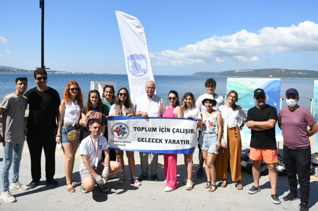 Sahilleri kullanan kentlilere de seslenen Başkan Gökhan “Yaz aylarının gelmesi ile birlikte sahillerimiz kentlilerin yoğun olarak kullandığı alanlar haline geliyor. Vatandaşlarımızdan buradan giderken lütfen atıklarını kuma değil, çöp kutularına atmalarını rica ediyorum. Bütün bu çöpler, rüzgarla ya da başka şekilde denize gidiyor. Denizde bu çöpler yıllar boyu kaybolmuyor. Marmara Denizi kapalı bir deniz olduğu için, maalesef tüm kirini üstünde tutuyor. Doğası bozuluyor, müsilajlar oluyor, balıkların nesli kayboluyor” şeklinde konuştu.