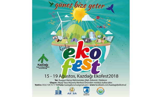 Kazdağı Doğal ve Kültürel Varlıkları Koruma Derneği'nin gerçekleştirdiği doğa festivali “Kazdağı Ekofestival”in dördüncüsü 15-19 Ağustos tarihleri arasında düzenlenecek. “Güneş bize yeter” sloganıyla doğaseverleri buluşturacak olan Ekofest’te bu sene enerji konusu konuşulacak. Festivalin başlangıç günü olan 15 Ağustos’ta alana girişler başlayacak ve festival boyunca sportif aktiviteler, atölyeler, paneller ve konserler olacak.