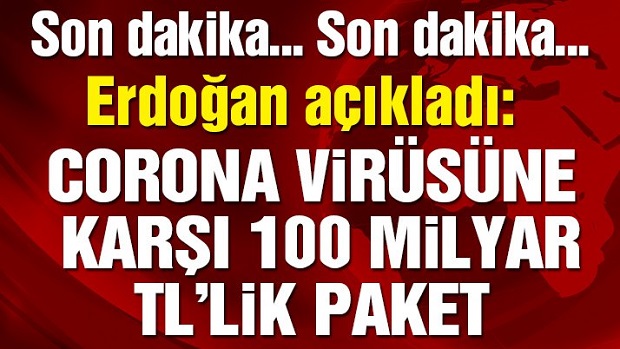 Cumhurbaşkanı Erdoğan’ın Corona virüsüne karşı açıkladığı 100 milyar TL’lik paketin maddeleri şöyle: