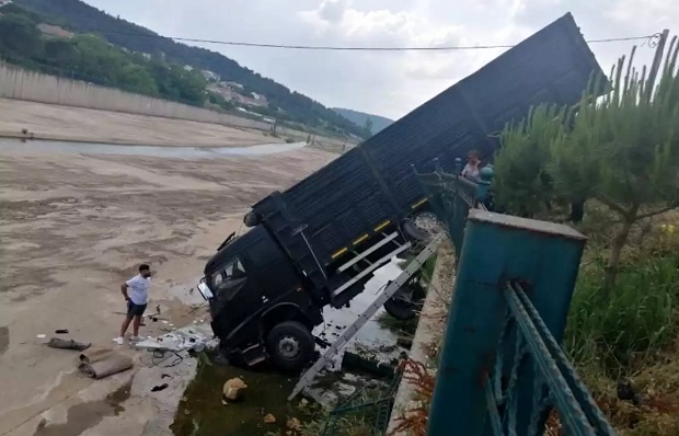 Frenleri Boşalan Kamyon Çaya Uçtu!