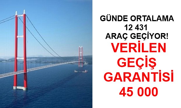 GESTAŞ'in adalar dahil günlük araç geçiş sayısı günlük 12 Bin431... Devletin Çanakkale Boğaz Köprüsü için verdiği araç garantisi 45 Bin... Köprüden geçmeyen aracın parası vatandaşın cebinden çıkacak.