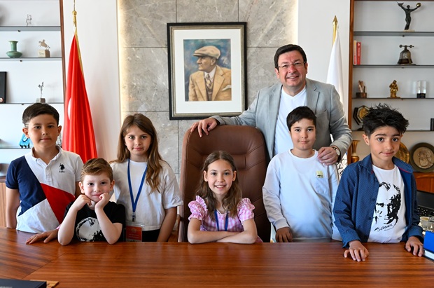 Başkan Erkek, Çocuk Meclisi üyelerine Başkanlık koltuğunu bir süreliğine devrederken minikler de hem bayramla ilgili görüşlerini paylaştı hem de kente ilişkin öneri ve isteklerini dile getirdi. Renkli program, Başkan Erkek'in çocuklara hediye takdimi ve hatıra fotoğrafı çekilmesi ile sona erdi.