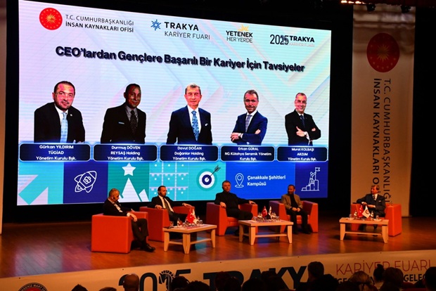 2025 TRAKYAKAF’ın birinci günü açılış töreninin ardından; Doğanlar Holding Yönetim Kurulu Başkanı Dr. Davut Doğan’ın moderatörlüğünde “CEO’lardan Gençlere Başarılı Bir Kariyer İçin Tavsiyeler” adlı panel gerçekleştirildi. Panelde, REYSAŞ Holding Yönetim Kurulu Başkanı Durmuş Döven, NG Kütahya Seramik Yönetim Kurulu Başkanı Erkan Güral, TÜGİAD Yönetim Kurulu Başkanı Gürkan Yıldırım, Arzum Yönetim Kurulu Başkanı Murat Kolbaşı tarafından öğrencilere kariyer ve istihdam konusunda bilgiler aktarıldı ve öğrencilerin yeteneklerini geliştirmeleri için tavsiyelerde bulunuldu. Panel, soru cevapların ardından konuşmacılara günün anısına hediye takdiminin ardından sona erdi.