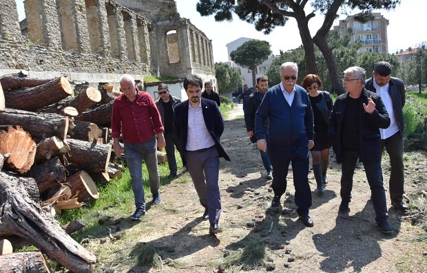 Geçtiğimiz sene Eski Askeri Hastane bahçesinde çıkan yangında zarar gören ağaçların temizlenmesine yönelik İl Kültür ve Turizm Müdürlüğü tarafından başlatılan ağaçların temizlenme çalışmaları kapsamında, yangında zarar görmeyen ağaçların da kesildiği iddiası üzerine Belediye Başkanı Ülgür Gökhan bölgede inceleme gerçekleştirdi.