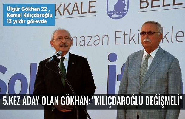 Çanakkale'de değişim konusunda en çok değişmesi istenen isim Ülgür Gökhan, kendi konumunu bırakıp Genel Başkan Kemal kılıçdaroğlu'nun değişmesi gerektiğini savundu! 5'nci kez Çanakkale Belediye Başkanı adayı olan Başkan Gökhan; "Kılıçdaroğlu değişmeli midir, değişmelidir" ifadelerini kullandı!