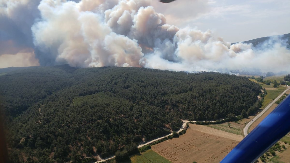 Yangının devam ettiği alanda yüzlerce ekip ve çok sayıda iş makinesi ile hava araçları görev yapıyor.