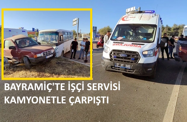 Çanakkale'nin Bayramiç ilçesi girişinde meydana gelen trafik kazasında, bir işçi servisi minibüsü ile kamyonetin çarpışması sonucu 5 kişi yaralandı.