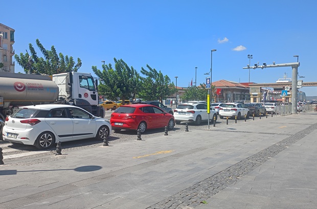 Çanakkale iskele meydanında tatilden dönen vatandaşların oluşturduğu trafik nedeniyle sıkışıklık yaşanıyor. Sabahın erken saatlerinde başlayan araç kuyruğu yaşamı da olumsuz etkiliyor. İskele meydanına toplu ulaşım araçları ile ulaşmak isteyen vatandaşlar da yoğunluk nedeniyle sıkıntı yaşıyorlar. İskele meydanında trafik ekipleri de Demircioğlu caddesinden iskele meydanına gidişleri kısıtlarken; feribota binmek isteyen tatilcilerin oluşturduğu trafik zaman zaman 500 metreyi buluyor.