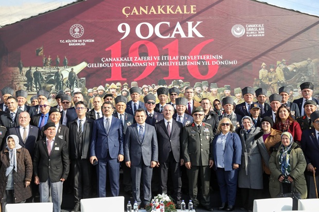 9 Ocak'ın bir zafer günü olduğunu söyleyen Çanakkale Savaşları Gelibolu Tarihi Alan Başkanı İsmail Kaşdemir, "Hepimize kutlu olsun. Zaferleri ve mazisi insanlık tarihiyle başlayan kahraman Türk ordusu, Çanakkale'de sayfalarını bir kez daha altın harflere doldurmuştur. Bu topraklarda 19 Şubat'ta başlayan o haksız ve hukuksuz saldırı, Mehmetçiğin iman dolu göğsüne çarpmış ve bugün tören yaptığımız bu topraklarda son düşman çizmesi de bu mübarek ve müstesna topraklardan ayrılmıştır. Bir kez daha bu toprakları vatan yapanları, Çanakkale'yi geçilmez yapanları, bu topraklarda yedi düvele karşı meydan okuyanları rahmetle, minnetle, şükranla yad ediyoruz ve her zaman onların torunları olarak, onların ruhuna sahip çıkmış evlatları olarak onları asla unutmayacağız ve unutturmayacağız. Çanakkale'de başlayan o meşalenin yakıldığı bu topraklarda Kurtuluş Savaşı'na giden yolun ve cumhuriyetimizin zorluklarını, fedakarlıklarını nasıl unuturuz? İşte bizler, bugün burada toplanarak onların hatıraları sahip çıkıyor ve onların ruhlarının, onların şuurlarının, onların bu dünyaya bakışlarının asla unutulmayacağını bir kez daha bu topraklardan ilan ediyoruz. Biz de Tarihi Alan Başkanlığı olarak o büyük insanların, o yüksek karakterli insanların hatıralarının olduğu, ayak izlerinin olduğu bu müstesna mekanlara, bu tarihi, gazi mekanlara gözümüz gibi bakıyoruz" dedi.