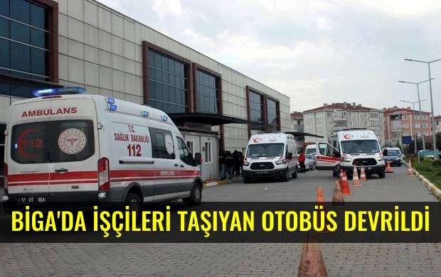 Çanakkale'nin Biga ilçesinde fabrika işçilerini taşıyan otobüsün devrilmesi sonucu meydana gelen kazada 17 işçi yaralandı.