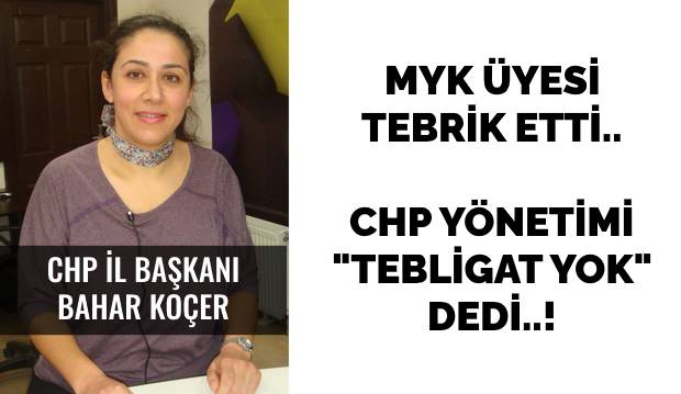 CHP İl Başkanlığına İl yönetim kurulu üyesi Bahar Koçer’in atanması büyük yankı uyandırdı. CHP Merkez Yürütme Kurulunca(MYK) alınan kararı bizzat MYK üyesi CHP Genel Başkan Yardımcısı Muharrem Erkek de doğrulayıp Koçer’e yeni görevinde başarılar dilerken; İl Yönetimi ise “Bize bu yönde tebligat yapılmadı” açıklaması yapması şaşkınlık yarattı!