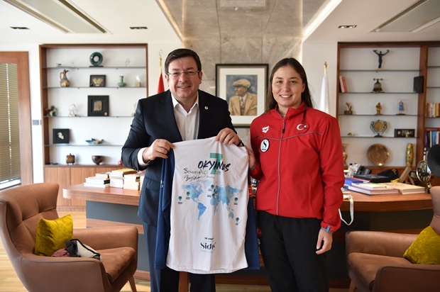 Belediye Başkanı Muharrem Erkek, Okyanus Yedilisi adı verilen dünyanın en zorlu yedi kanalından beşini yüzerek geçen ultra maraton yüzücüsü Bengisu Avcı ile eşi ve aynı zamanda antrenörü olan Egor Tropeano'yu ağırladı.