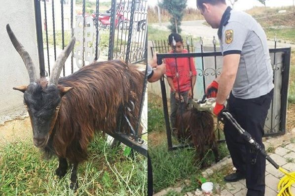 Çanakkale'nin Biga ilçesinde demir parmaklıklara sıkışan bir keçi, itfaiye ekipleri tarafından kurtarıldı.