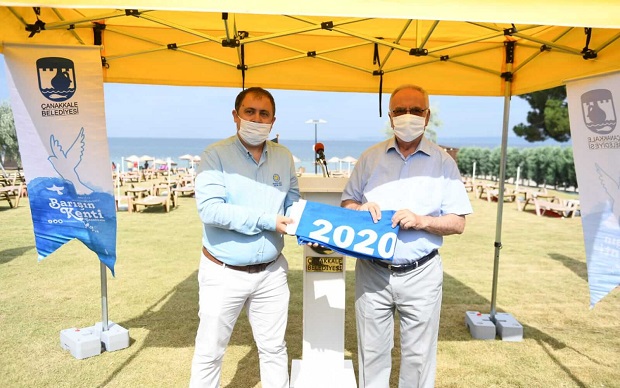 Konuşmaların ardından Türkiye Çevre Eğitim Vakfı (TÜRÇEV) Kuzey Ege İlleri Koordinatörü Doğan Karataş, plajın Mavi Bayrak sertifikalarını Başkan Gökhan'a takdim ederken, aynı zamanda da Mavi Bayrak, Güzelyalı Belediye Halk Plajı'na asıldı. Güzelyalı Belediye Halk Plajı'nın ardından, Yeni Kordon'da bulunan Barış Plajı'nda da bir tören düzenlendi. Kent merkezinde yer alan bu alana da 6. Kez Mavi Bayrak asıldı. Buradaki tören de Çanakkale Belediyespor sporcularının sezonun açılışını yapmak üzere denize girmeleri ile son buldu. Mavi Bayrak sezonu, 31 Ağustos 2020 tarihine kadar devam edecek.