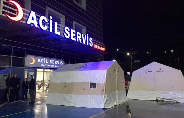 ÇOMÜ Tıp Fakültesi Hastanesi'nin Pandemi vakalarına (Corona Virüsü) bakmak üzere hazırlıklarını tamamladı. Üniversite Hastanesi acil servisin önünde çadırlar kurulmaya başlandı. Şüpheli hastalar, burada ilk kontrolden geçtikten sonra servislere alınacaklar. ÇOMÜ Tıp Fakültesi Başhekimi Prof.Dr. Okhan Akdur, Çanakkale genelinde üniversite hastanesi olarak öncelikle Acil Serviste bu hastaların ve olası vakaların değerlendirilmesi süreci ile sonrasında bu hastaların takip ve tedavilerinin nasıl gerçekleştirileceği ile ilgili akışın belirlendiğini buna yönelik fiziki alan düzenlemelerinin yapılarak ilgili personele eğitim verildiğini belirtti.