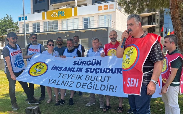 Sendika üyesi arkadaşlarının yanında olduklarını ifade eden Sendika yönetimi; “Bunlar ve onlarca usulsüz işlem için amirlerine Kurumun ilkelerini, yönetmeliklerini hatırlatan arkadaşımız Tevfik Bulut, ardı arkası kesilmeyen cezalarla karşı karşıya kaldı, sürgün edildi! Bizler biliyoruz ki, hiçbir baskı ve sindirme politikası bizlerin kararlı mücadelesini, duruşunu, ilkelerini engelleyemez. Tevfik Bulut arkadaşımızı da engelleyemez. Onun bu haklı mücadelesinde bir aradayız ve hep bir arada olacağız. Tevfik Bulut, çalışma hayatı boyunca mevzuat ve yönetmeliklere uygun çalışmış, usulsüz ve hukuksuz işlerden uzak durmuş, kurumunun çıkar ve menfaatlerini öncelik saymış bir emekçidir. Bizler çok iyi biliyoruz ki; bu haksız ve hukuksuz ceza uygulamalar, sürgünler siyasi iktidarın; emekçilerin mücadelesinden duyduğu rahatsızlığın sonucudur. Sendikal Tarihimiz boyunca iktidarların ve onların kuklası kurumlardaki yöneticilerin hukuksuzluklarına, baskı politikalarına boyun eğmeyen bir geleneğin mirasını onurla sürdürüyoruz. Dün olduğu gibi bugün de baskılara, ihraçlara, sürgünlere teslim olmadık, olmayacağız. Sözümüzü söylemekten asla geri adım atmayacağız” diyerek sürgün kararının bir an önce iptal edilmesini istediler.