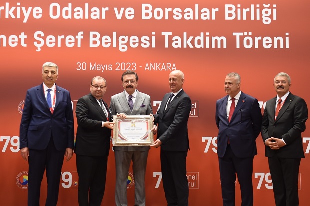 Genel Kurul kapsamında TOBB Birlik Merkezi'nde bulunan konferans salonunda düzenlenen Hizmet Şeref Belgesi Takdim Töreni'nde TOBB'da delege olarak 10-20-30 yıl ve üzerinde süresini tamamlayanlara belgeleri takdim edildi. Törende, TOBB Genel Kurul Delegesi Biga TSO Başkanı Şadan Doğan'a da TOBB Başkanı Rifat Hisarcıklıoğlu tarafından 10 yıl "Hizmet Şeref Belgesi" takdim edildi.