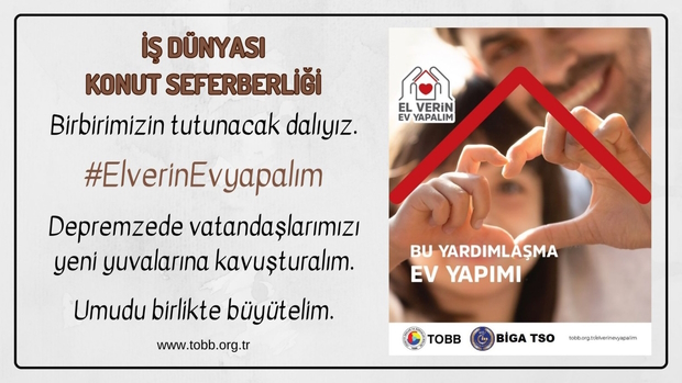 Biga TSO Başkanı Şadan Doğan TOBB’un başlatmış olduğu “İş Dünyası Konut Seferberliği” ile ilgili bir açıklama yaptı.