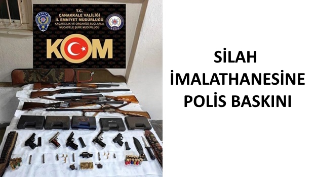 Çanakkale İl Emniyet Müdürlüğü Kaçakçılık ve Organize Suçlar (KOM) Şube Müdürlüğü ekipleri tarafından silah imalathanesi ve ikamette yapılan operasyonda 5 adet tabanca, 57 adet 9-19 mm ve 4 adet 7.65 mm fişek, 6 adet namlu parçaları, 3 adet tetik mekanizması, 1 adet komando bıçağı ele geçirildi. Ayrıca 5 adet av tüfeği ve 50 adet av tüfeği fişeği idari yaptırım kapsamında işlem yapılması amacıyla muhafaza altına alındı. Şahıs, hakkında günün nöbetçi savcısından alınan talimat gereği 6136 SKM silah ticareti kapsamında mevcutlu olarak çıkarıldığı adli makamlar tarafından adli kontrol hükümlerince serbest bırakıldı.