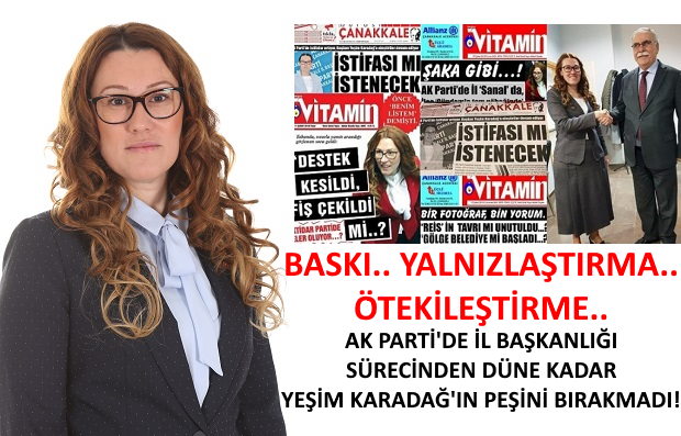AK Parti Grup Başkanvekili kendisine yakın 5 ismi görevden alan Yeşim Karadağ için düğmeye bastı. AK Parti medyası olarak bilinen basın organlarıda peşi sıra Yeşim Karadağ'ı itibarsızlaştırmak için harekete geçtiler. Her gün yeni bir kara propaganda ile haberler yapılmaya başlandı ve hedefte il yönetimi değil sadece il başkanı Karadağ vardı.