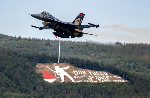 Türk Silahlı Kuvvetlerinin gösteri ekibi SOLOTÜRK, 23 Nisan Ulusal Egemenlik ve Çocuk Bayramı etkinlikleri kapsamında, Çanakkale'de gösteri uçuşu gerçekleştirdi. Anadolu Hamidiye Tabyası'nda toplanan vatandaşlar, F-16 uçağıyla yapılan gösteriyi ilgiyle izledi, cep telefonlarıyla görüntüledi. Çanakkale Boğazı semalarında yarım saat süren gösteriyi izleyenler heyecan dolu anlar yaşadı. Etkinlik alanında ayrıca okullar tarafından hazırlanan gösteriler ve sahne etkinlikleri de öğrenciler tarafından sunuldu. Çanakkale Valisi İlhami Aktaş, Çanakkale Savaşları Gelibolu Tarihi Alan Başkanı İsmail Kaşdemir, İl Milli Eğitim Müdürü Ferhat Yılmaz da burada öğrencilerle birlikte etkinliklere katıldı.