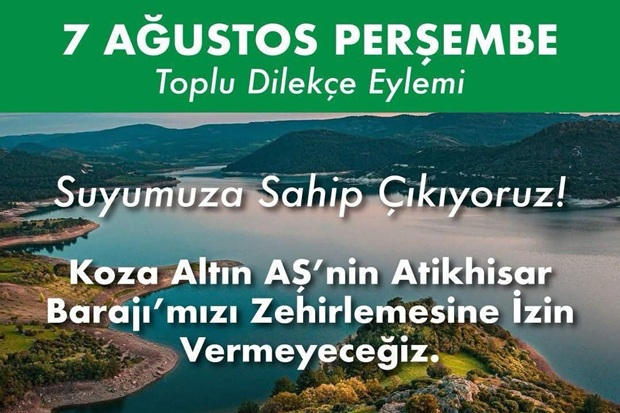 Koza Altın A.Ş.’nin Atikhisar Barajı’nı zehirlemesine karşı çıkan İDA Dayanışma Derneği, 7 Ağustos Perşembe günü toplu dilekçe eylemi düzenleyecek.