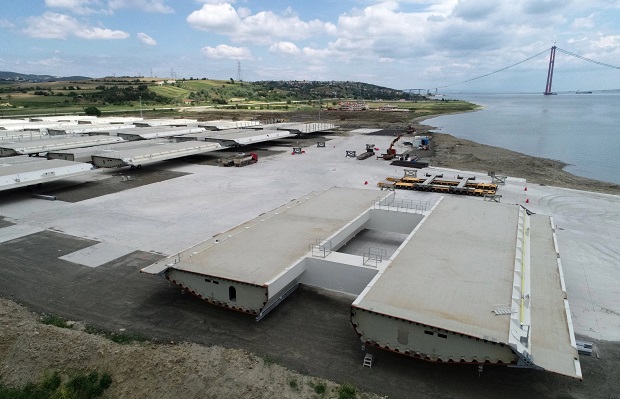 Çanakkale'nin Lapseki ve Gelibolu ilçeleri arasında inşası süren "1915 Çanakkale Köprüsü'nde" araçların geçeceği yol için tabliye montajına hazırlık yapılıyor. Barındırdığı özellikler itibarıyla "simgelerin köprüsü" diye anılan, mühendisliğindeki ince detayları ile dünyanın en uzun orta açıklıklı köprüsü olacak dev yapının inşaat çalışması hızla devam ediyor.