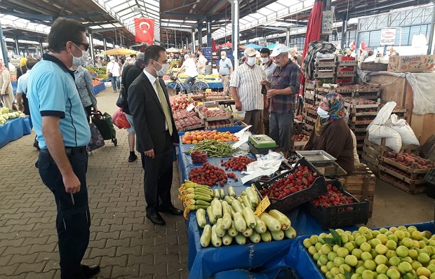 Vali İlhami Aktaş, vatandaşların Pazar yerinin giriş - çıkış noktalarında kontrolünü sağlayan zabıta memurlarından uygulanan Koronavirüs tedbirleri hakkında bilgi aldı. Koronavirüs tedbirleri kapsamında vatandaşların sağlığı için il genelinde yoğun önlemler alındığını ifade eden Vali İlhami Aktaş, “Pazar esnafımızın Koronavirüse karşı alınan tedbirlerin uygulanmasında büyük emeği var. Bu süreçte bizlere destek oldukları için Pazar esnafımıza teşekkür ediyorum” dedi.