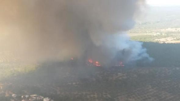 Çanakkale’nin Ezine ilçesi Geyikli bölgesinde çıkan orman yangını rüzgarın etkisiyle büyüyor. Rüzgarın etkisiyle büyüyen yangın civarda bulunan yazlıklari tehdit ediyor.