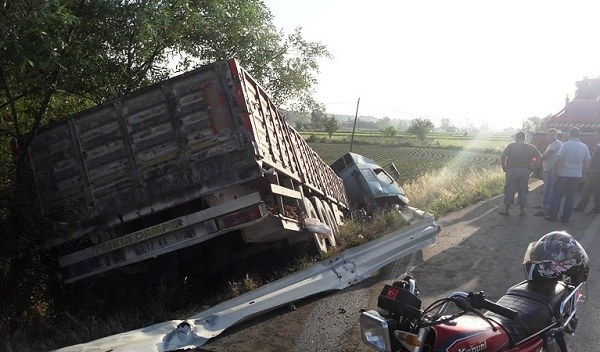 Biga’dan Çanakkale istikametine giden K. A yönetimindeki 17 LJ 102 plakalı tır, sürücüsünün direksiyon hakimiyetini kaybetmesi sonucu orta refüjlere çarparak karşı yöne geçti. Sürüklenen araç, ağaçlık alana yan yattı. Kazada yaralanan olmazken, araçta maddi hasar meydana geldi.