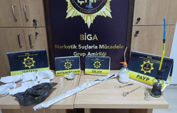 Biga İlçe Emniyet Müdürlüğü ekipleri tarafından ilçede zehir tacirliği yapan uyuşturucu satıcılarına yönelik operasyon düzenledi. Operasyonda A.B., M.T., A.G., B.Ö., O.Ö., U.K., gözaltına alındı. Şüphelilerin ev ve üzerlerinde yapılan aramalarda yarım kilo metamfetamin, bonzai ve uyuşturucu madde kullanmaya yarayan aparatlar ele geçirildi.
